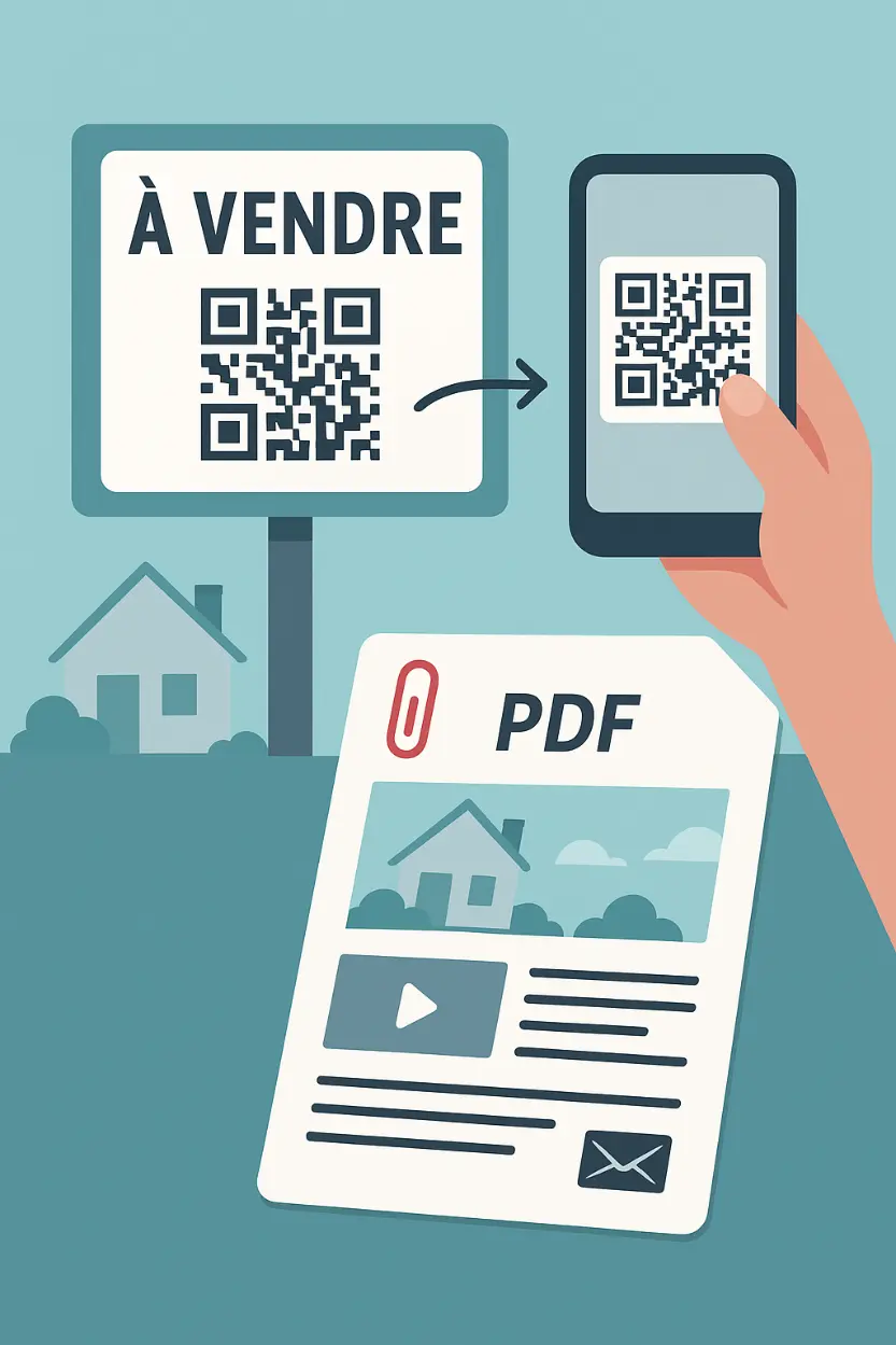 Grâce à un QR Code apposé sur les panneaux “À vendre”, les passants peuvent accéder instantanément à une fiche numérique complète du bien :